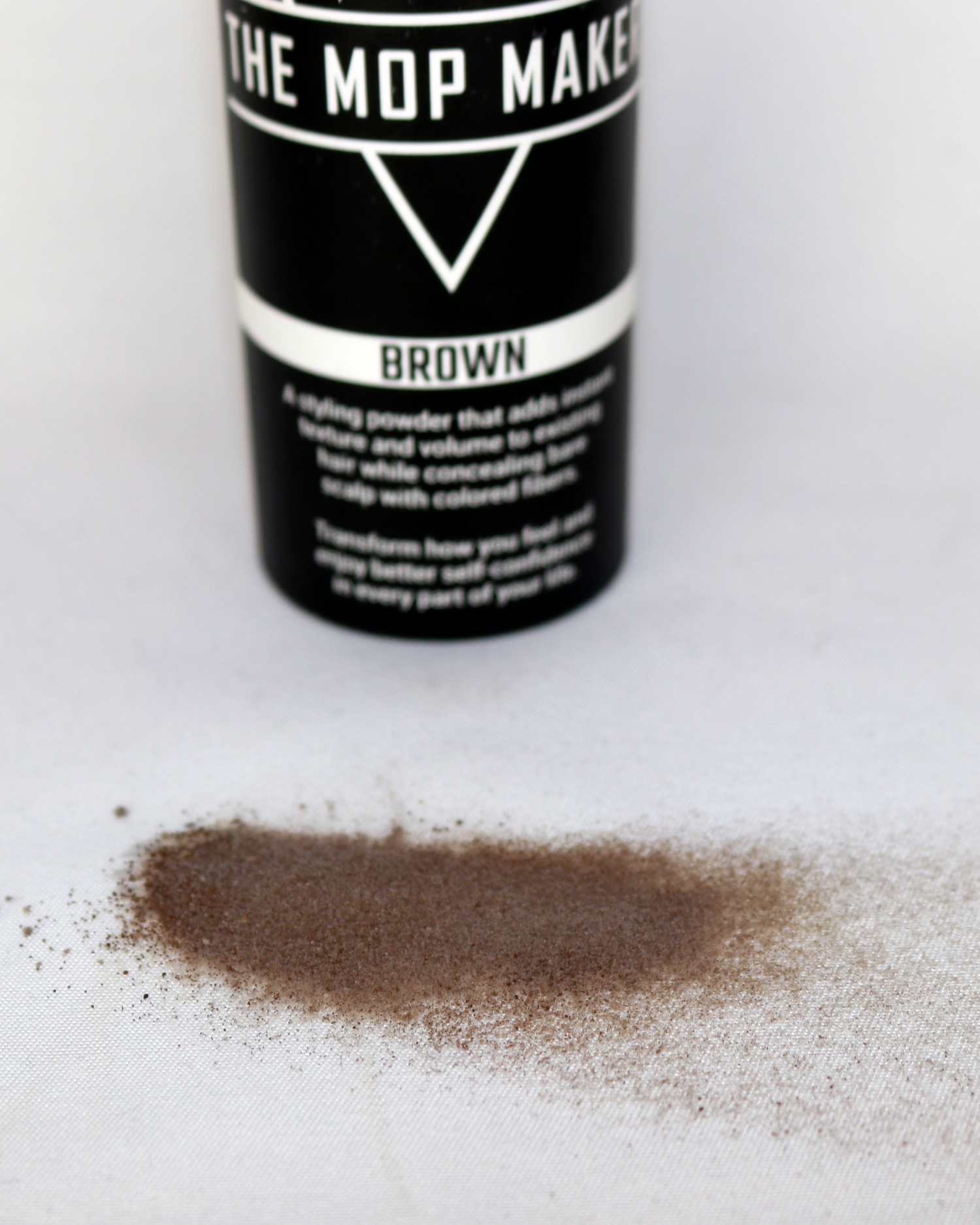 Thanks to our proprietary formula and confidential manufacturing process, Mop Maker provides all of the upsides of these products and none of the downsides. It adds thick texture to thin hair strands while it lands on and covers visible scalp, but unlike typical texture powders, it's colored to match your natural hair color so it won't leave white residue everywhere. It also bonds securely to your hair and stays put, unlike loose hair fibers that can shift or fall out.