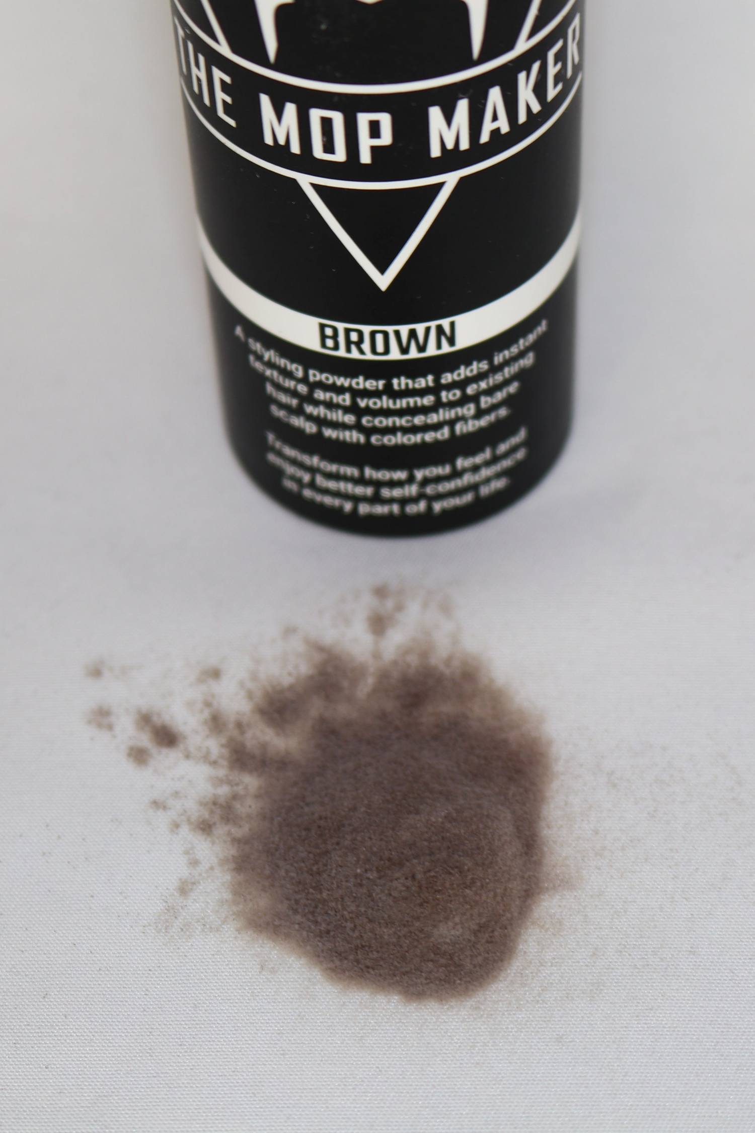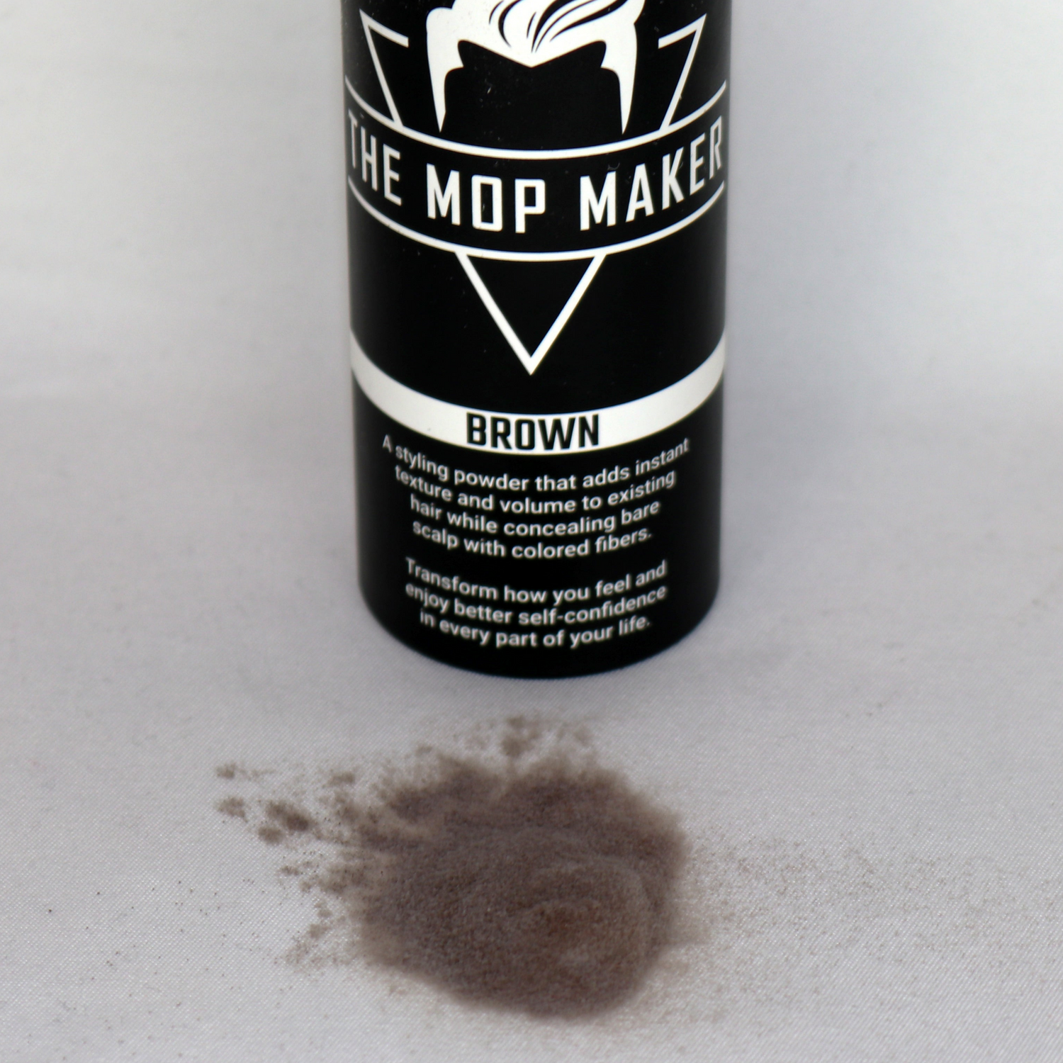 Thanks to our proprietary formula and confidential manufacturing process, Mop Maker provides all of the upsides of these products and none of the downsides. It adds thick texture to thin hair strands while it lands on and covers visible scalp, but unlike typical texture powders, it's colored to match your natural hair color so it won't leave white residue everywhere. It also bonds securely to your hair and stays put, unlike loose hair fibers that can shift or fall out.
